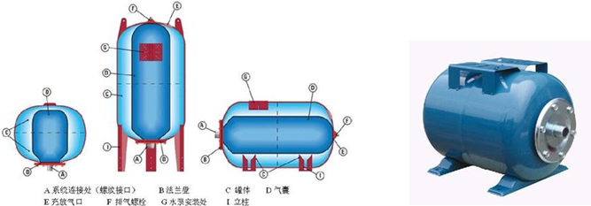 膨脹罐的工作原理:當外界有壓力的水進入膨脹罐氣囊內時,密封在罐內的氮氣被壓縮,根據波義耳氣體 定律,氣體受到壓縮后體積變小壓力升高,直到膨脹罐內氣體壓力與水的壓力達到一致時停止進水。當水流失壓力減低時膨脹罐內氣體壓力大于水的壓力,此時氣體膨脹將氣囊內的水擠出補到系統,直到氣體壓力與水的壓力再次達到一致時停止排水。膨脹罐主要用在水系統上,在鍋爐供暖系統上膨脹罐主要是用來吸收由于溫度升高系統水膨脹引起的壓力波動;在變頻供水或其他供水設備上主要是用來調節因閥門開關,水泵啟閉而引起壓力波動,消除水錘效應的一個裝置。
